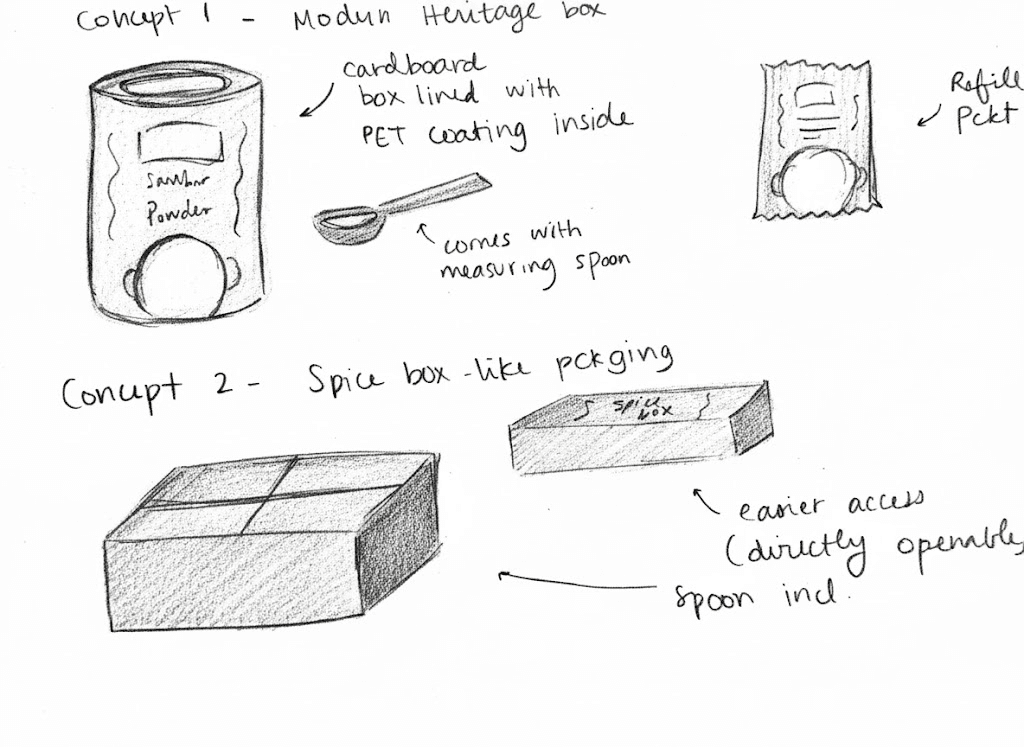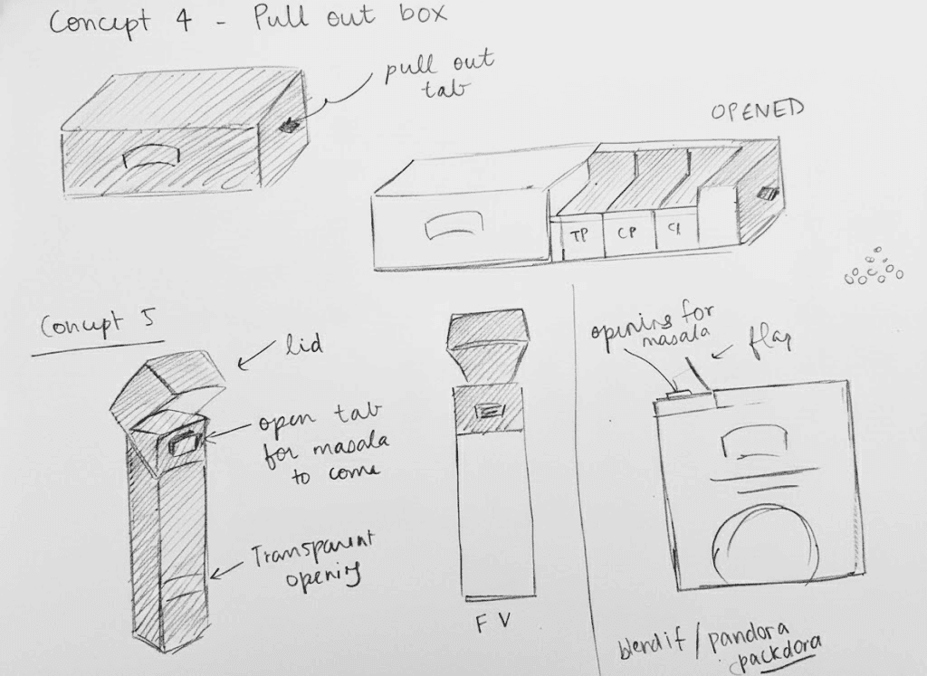 To create a premium masala packaging system that ensures ease of use and storage, eliminating the need for clips or extra containers. The design protects the authentic aroma and freshness by minimizing air contact, while offering a quick, hassle-free experience for everyday cooking.