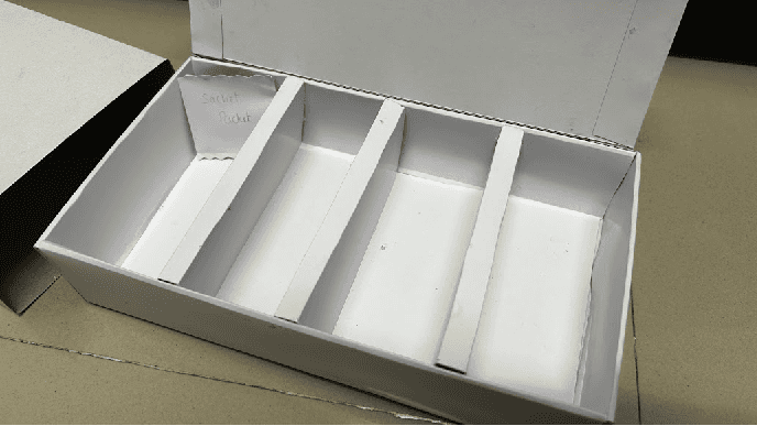 In the final prototype, the sleeve was dropped since the box closes magnetically on its own.
