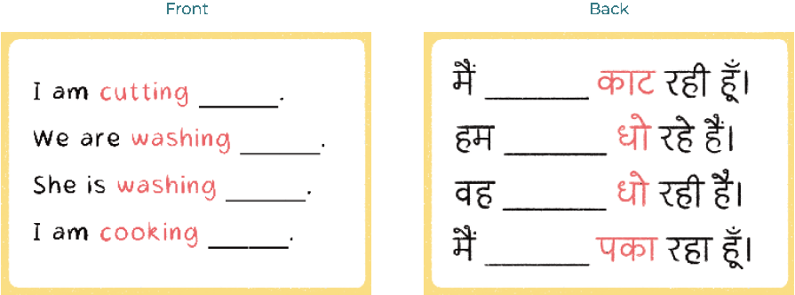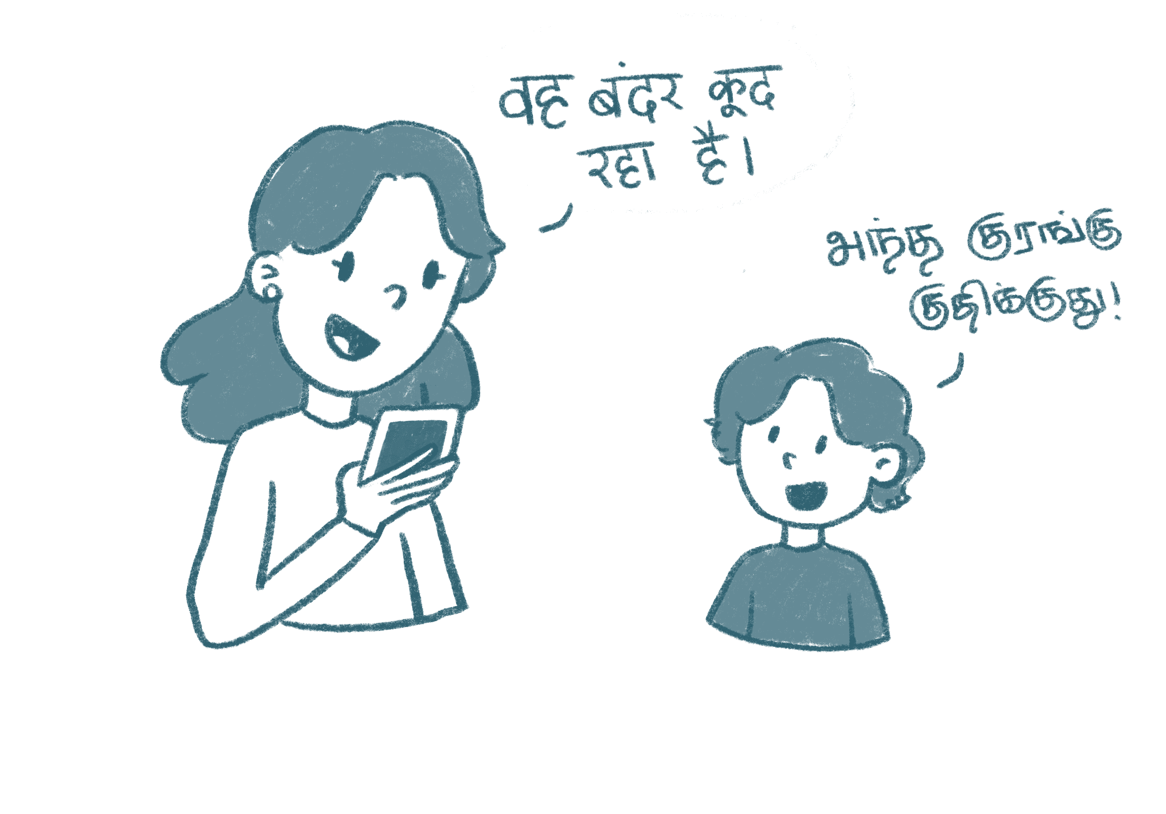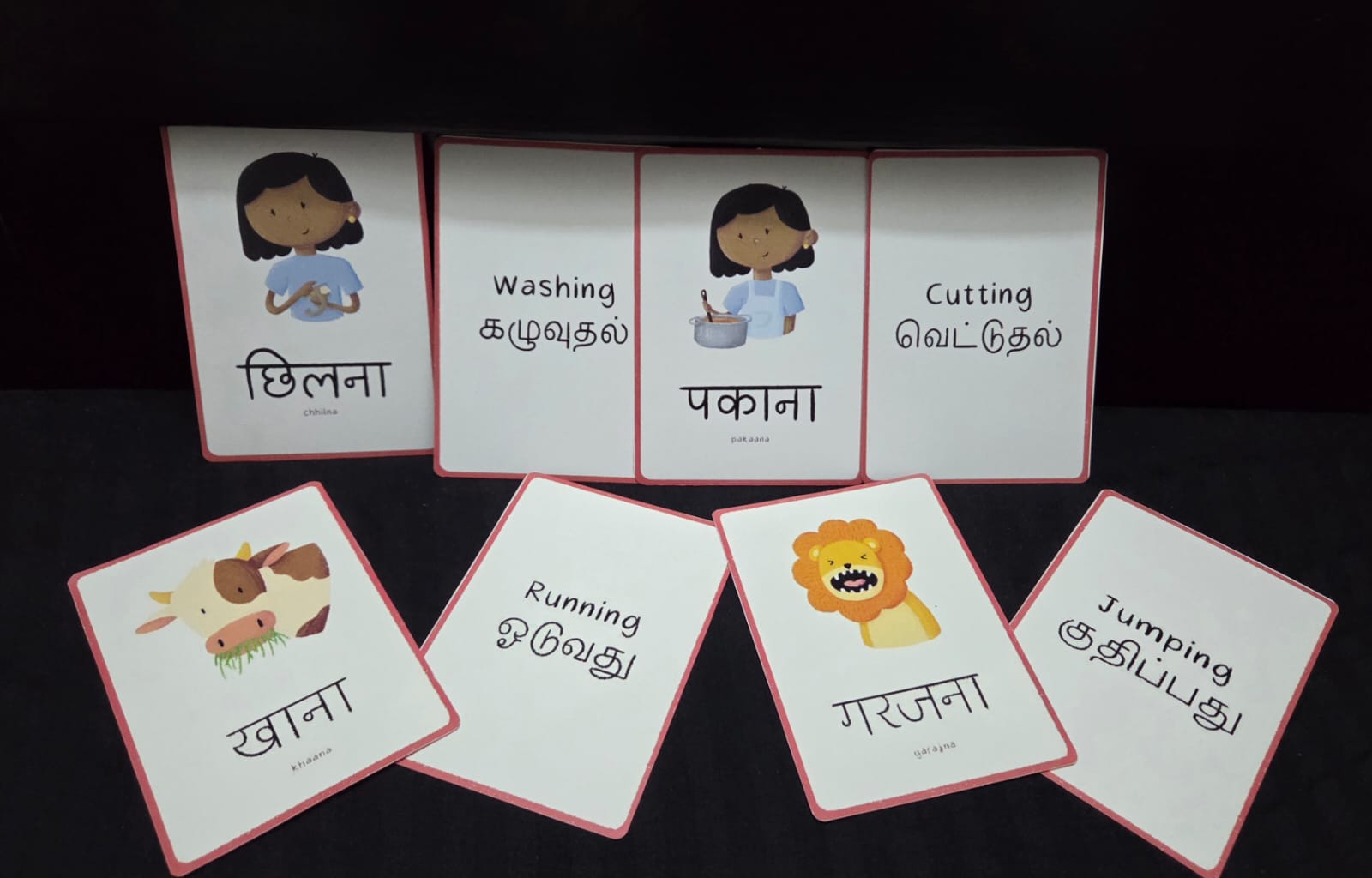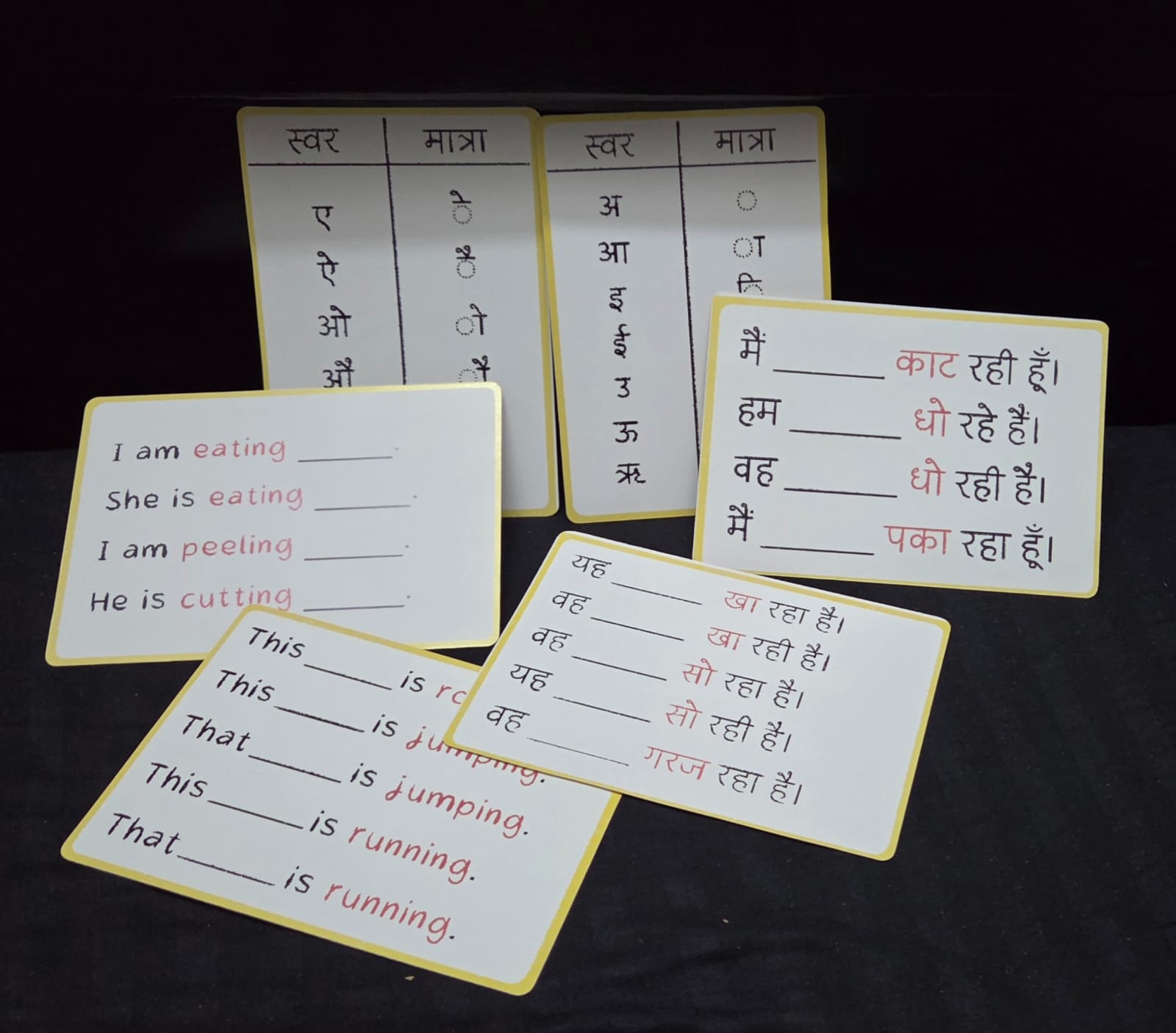 How to Play: An adult reads a sentence aloud in Hindi. The child translates it into Tamil or English. Switch languages to practice translating both ways and strengthen understanding.