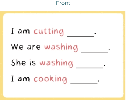 How to Play: Pick a sentence card with a blank. Choose an fruits and vegetables/animal card and an action card, then fill in the blank to complete the sentence. Say the full sentence aloud together and repeat for practice.