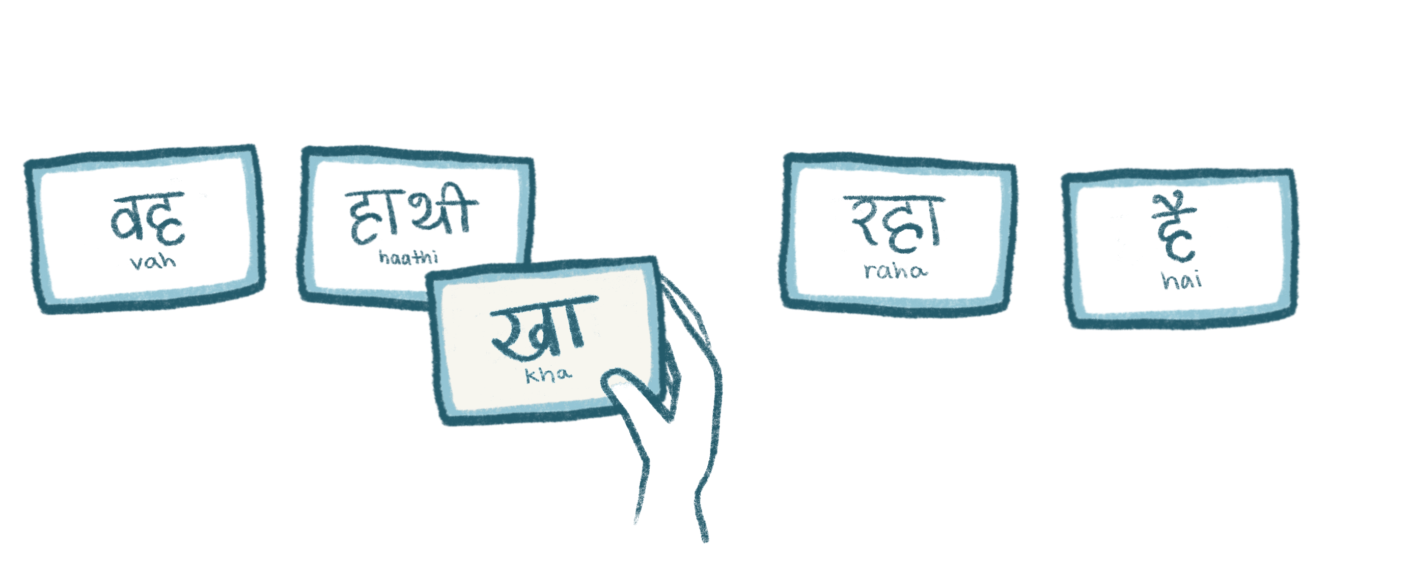 The aim was to create a system that introduces Hindi without pressure, using objects children already recognise to build confidence through repetition and play.